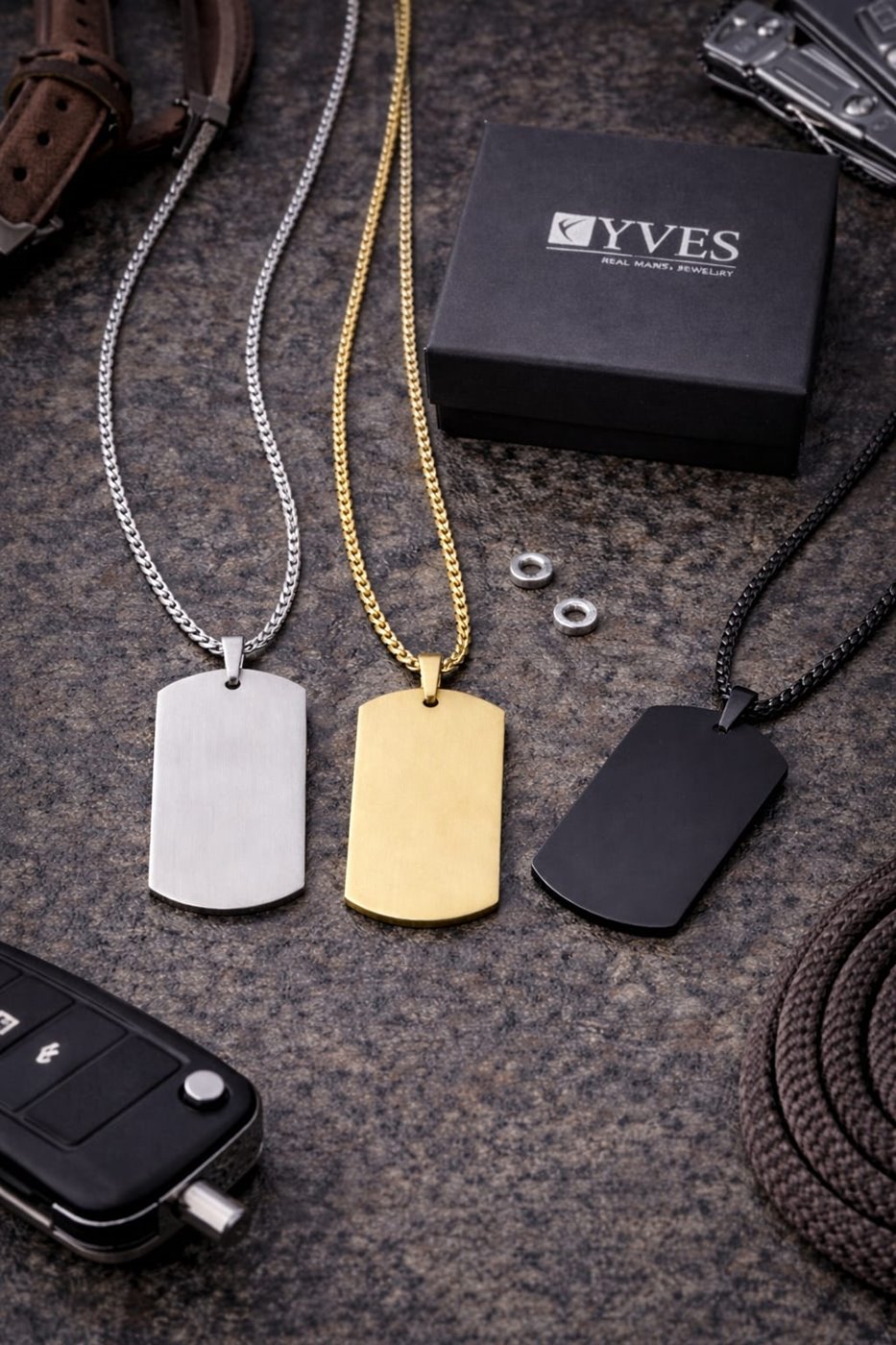 Męski stylowy naszyjnik YVES. Klasyczny nieśmiertelnik. Wykonanany ze strali szlachetnej 316L. Długość: 60 cm. Antyalergiczna powłoka gwarantuje bezpieczne użytkowanie bez ryzyka alergii. Każdy produkt jest starannie zapakowany w eleganckie pudełko GRATIS - idealny pomysł na prezent. Spraw, aby Twój prezent wyglądał jeszcze bardziej ekskluzywnie - polecamy torebeczki do męskiej biżuterii o symbolu P5018.