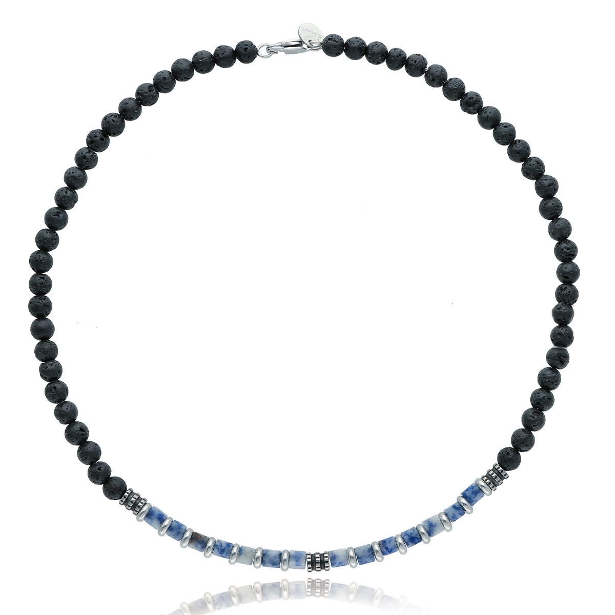Naszyjnik męski YVES wykonany ze stali szlachetnej i naturalnych kamieni – agatu i sodalitu. Długość 45 cm, wykończony w sposób gwarantujący wygodę codziennego noszenia. Stal 316L jest w pełni hypoalergiczna, odporna na zarysowania i utratę koloru. Naszyjnik zapakowany w eleganckie pudełko, idealny na prezent. Model doskonale komponuje się z bransoletą o tym samym indeksie.