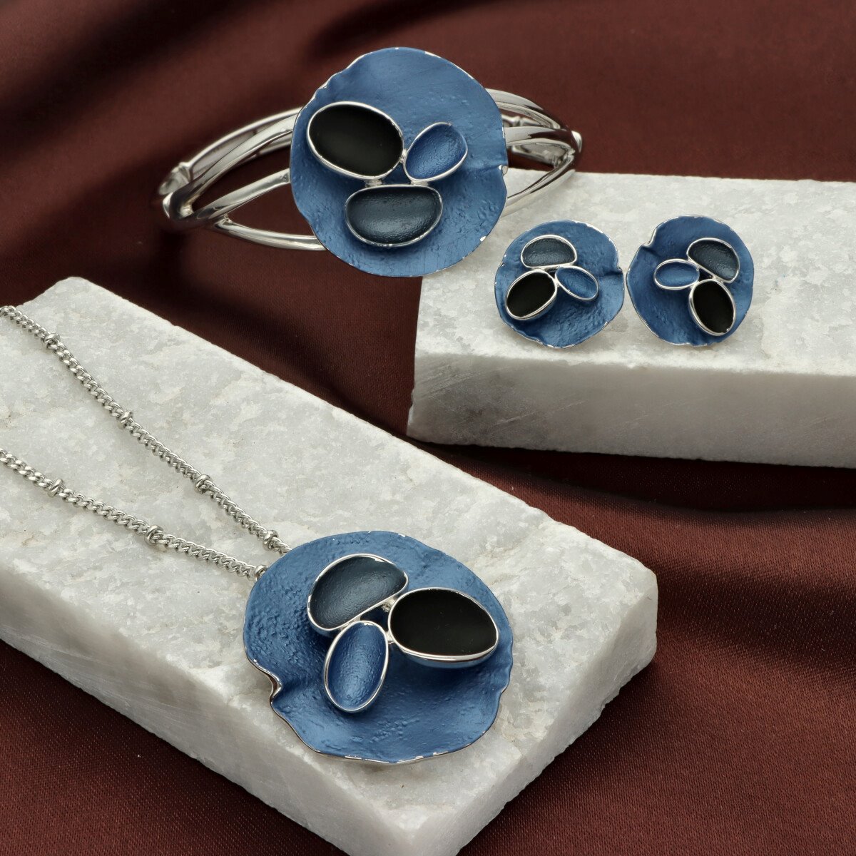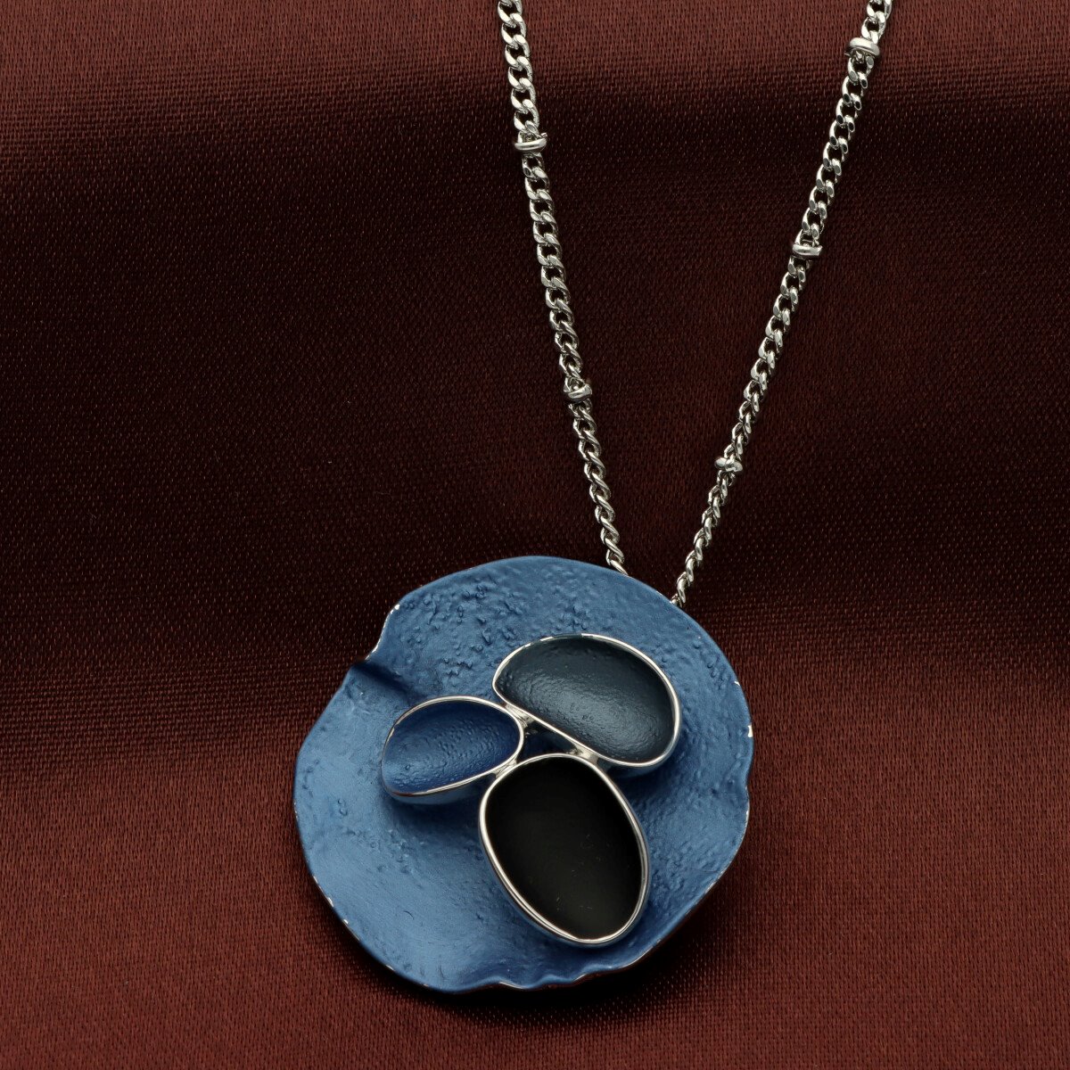 Uroczy, dekoltowy naszyjnik wykonany z antyalergicznego metalu i kolorowej emalii. Długość 45 cm + 8 cm regulacja. Szukaj do kompletu bransoletki i kolczyków o tym samym indeksie numerycznym.