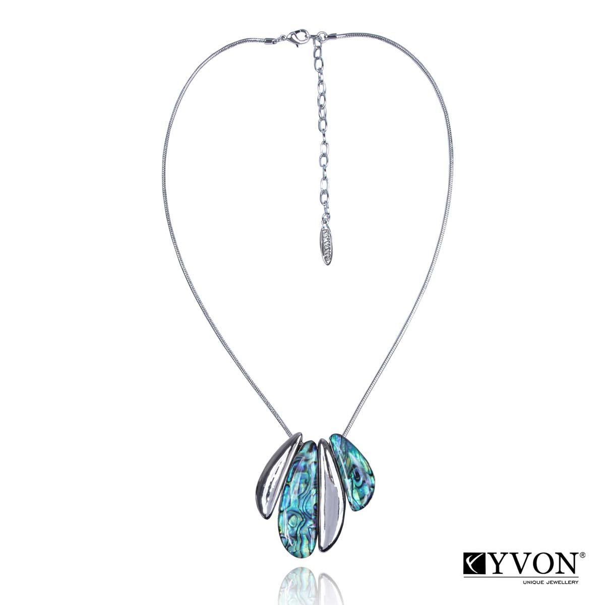 Półkrótki, elegancki naszyjnik, wykonany z najwyższej jakości materiałów - muszli naturalnej Abalone oraz w 100% anty-alergicznego metalu. Długość: 42 cm + regulacja. Na eleganckim łańcuszku "żmijce". Znakomicie uzupełni codzienne stylizacje, przykuwając wzrok na dekoldzie. Szukaj do kompletu bransolety i kolczyków o tym samym indeksie numerycznym.
