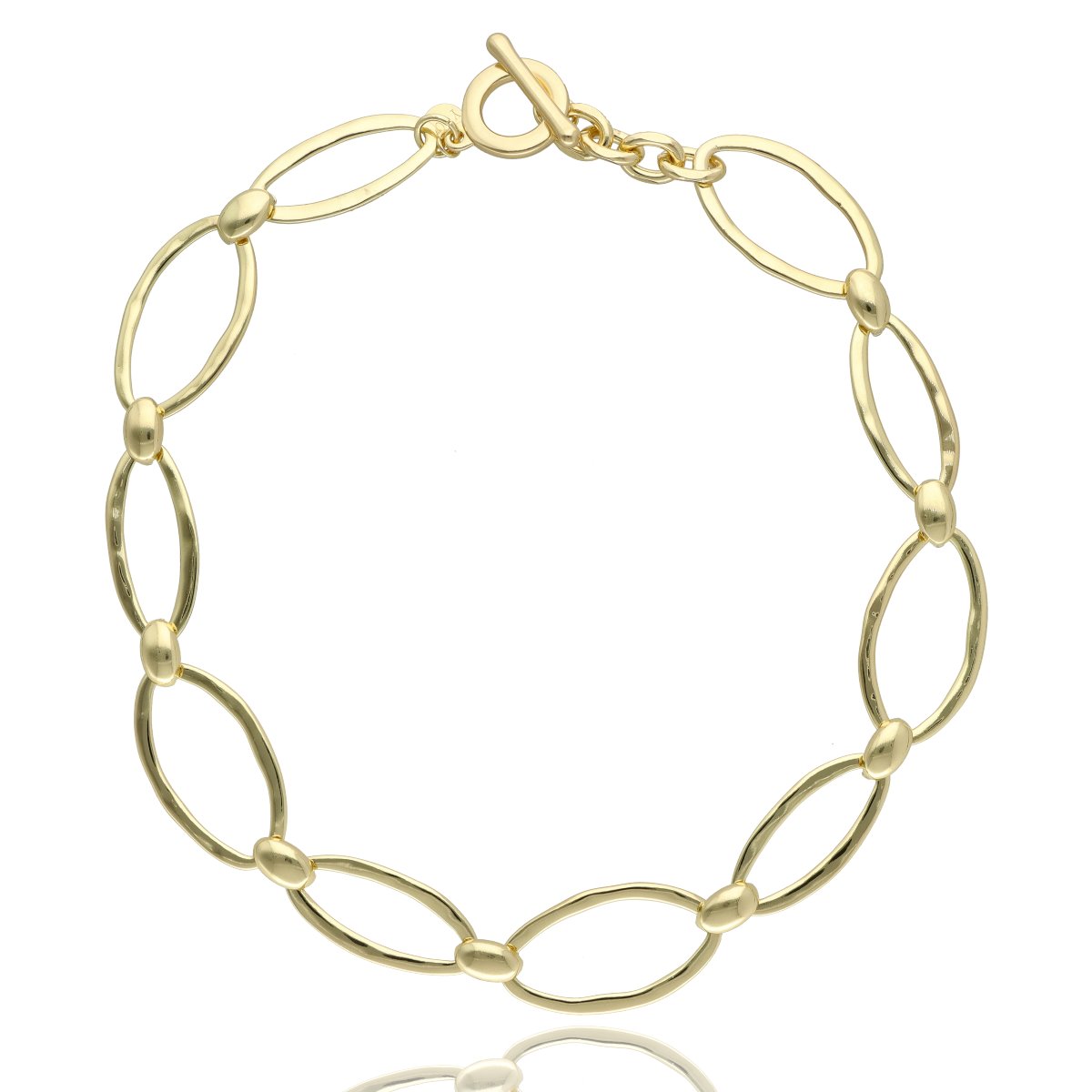Opis produktu: Efektowny naszyjnik o nowoczesnym, wyrazistym charakterze, wykonany z wysokiej jakości hipoalergicznego metalu (zamak – stop cynku), zapewniającego komfort noszenia oraz trwałość. Model wyróżnia się eleganckim wykończeniem w modnym odcieniu light gold – jasnego, subtelnego złota inspirowanego włoskim stylem biżuterii. To właśnie ten odcień nadaje całości luksusowego, ale jednocześnie bardzo świeżego i współczesnego wyglądu. Tego typu złoto jest obecnie jednym z najmocniejszych trendów – jaśniejsze, bardziej „soft” niż klasyczne żółte złoto. Wyraziste ogniwa tworzą spójną, elegancką formę, która przyciąga uwagę i pięknie układa się na szyi. Naszyjnik doskonale sprawdzi się zarówno w codziennych stylizacjach, jak i w bardziej eleganckich zestawieniach. Długość naszyjnika: 44 cm Materiał: metal hipoalergiczny (zamak)