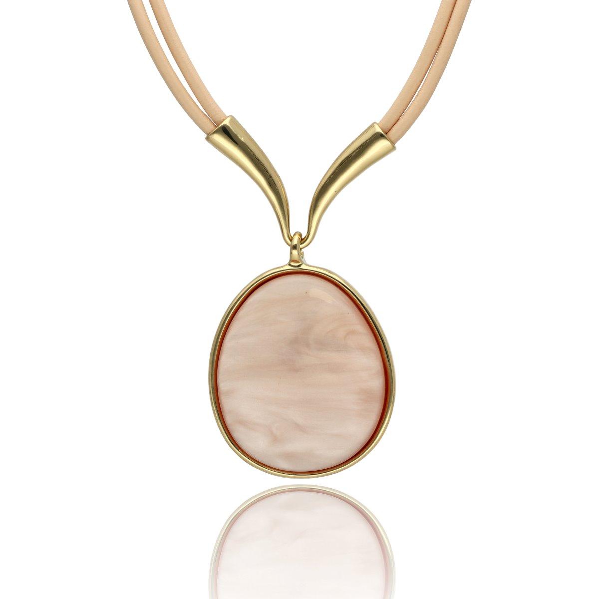 Eleganski dekoltowy naszyjnik, wykonany z żywicy i skóry naturalnej. Długość 45 cm + 8 cm regulacji.