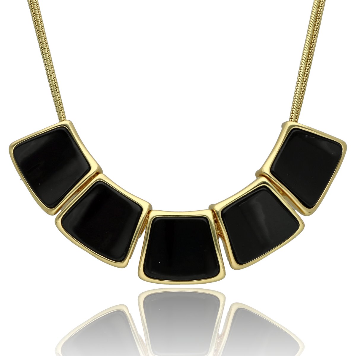 Eleganski dekoltowy naszyjnik, wykonany z żywicy i skóry naturalnej. Długość 45 cm + 8 cm regulacji.