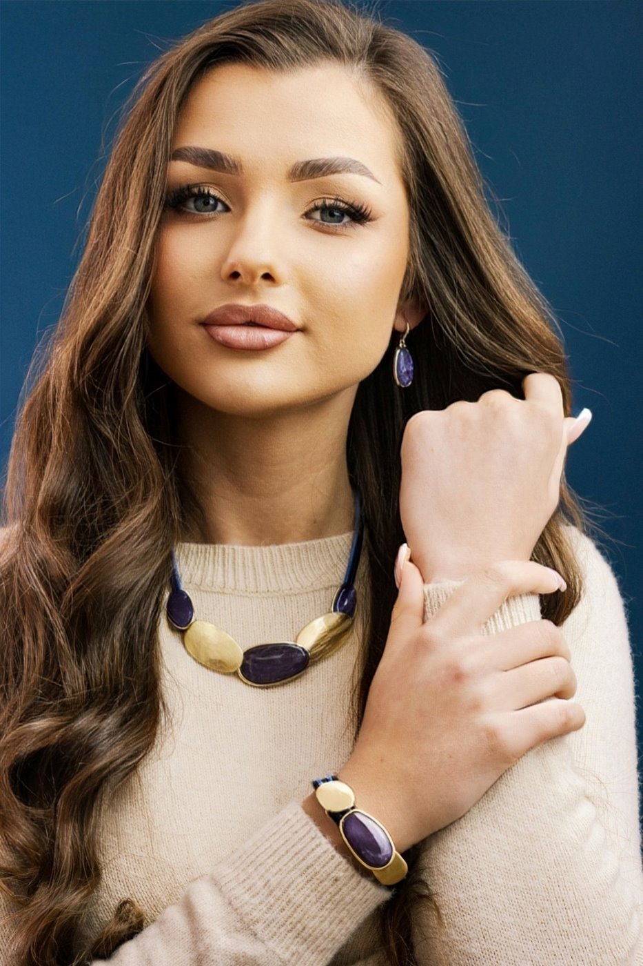 Stylowy i elegancki – doskonale prezentuje się solo lub jako część zestawu z bransoletką i kolczykami.