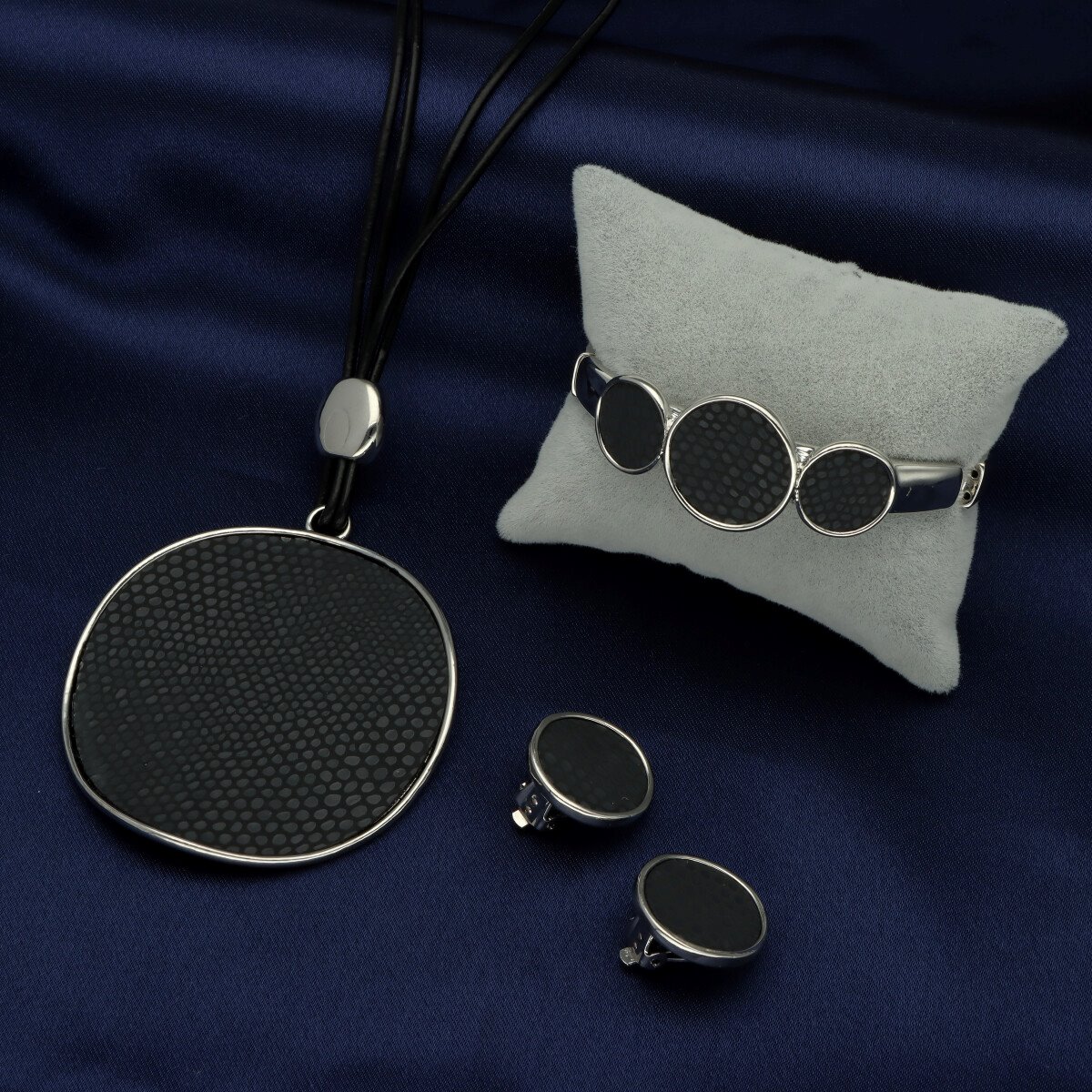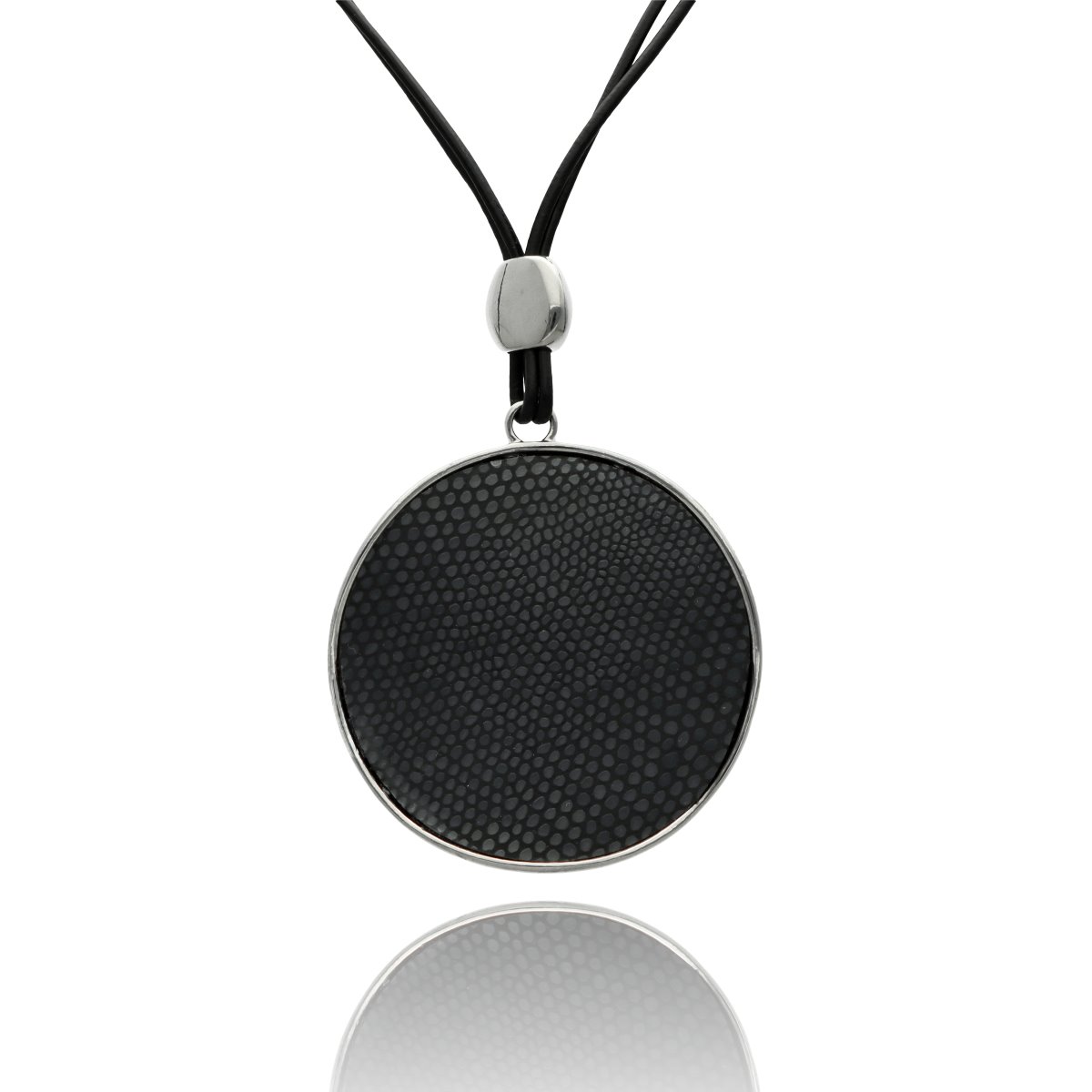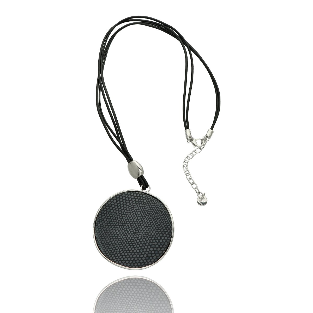 Długi, wysmuklający sylwetkę naszyjnik, wykonany z antyalergicznego metalu i nakrapianj ekologicznej skóry oraz skóry naturalnej (rzemień). Długość 70 cm + regulacja. Szukaj do kompletu bransoletki i kolczyków o tym samym indeksie numerycznym.