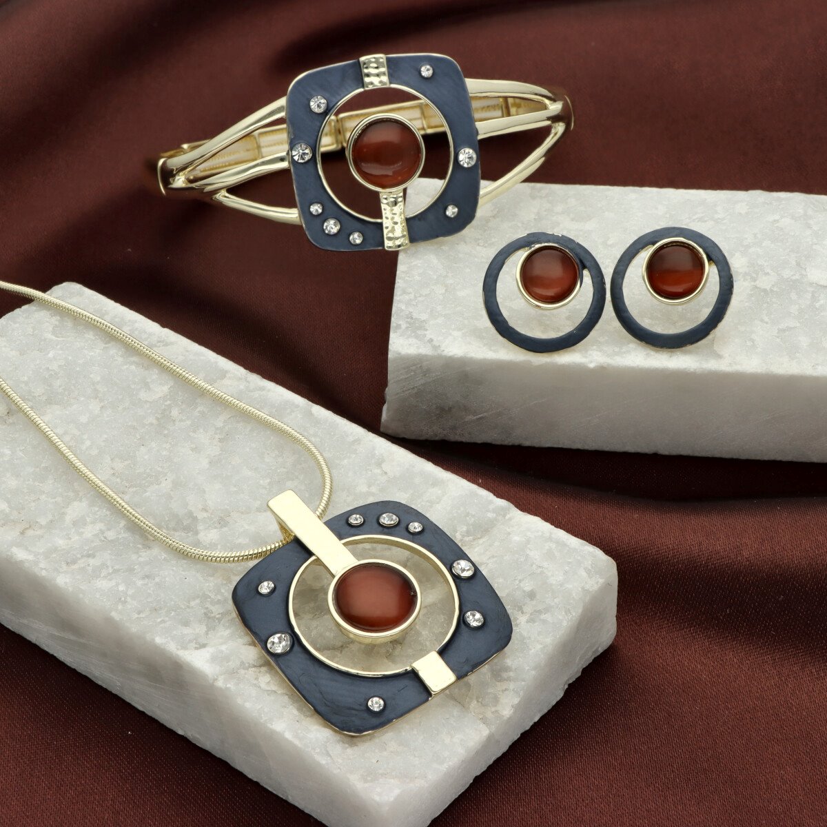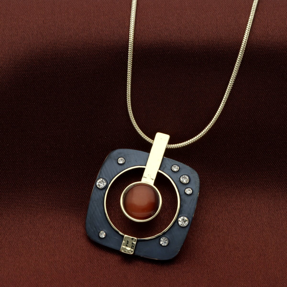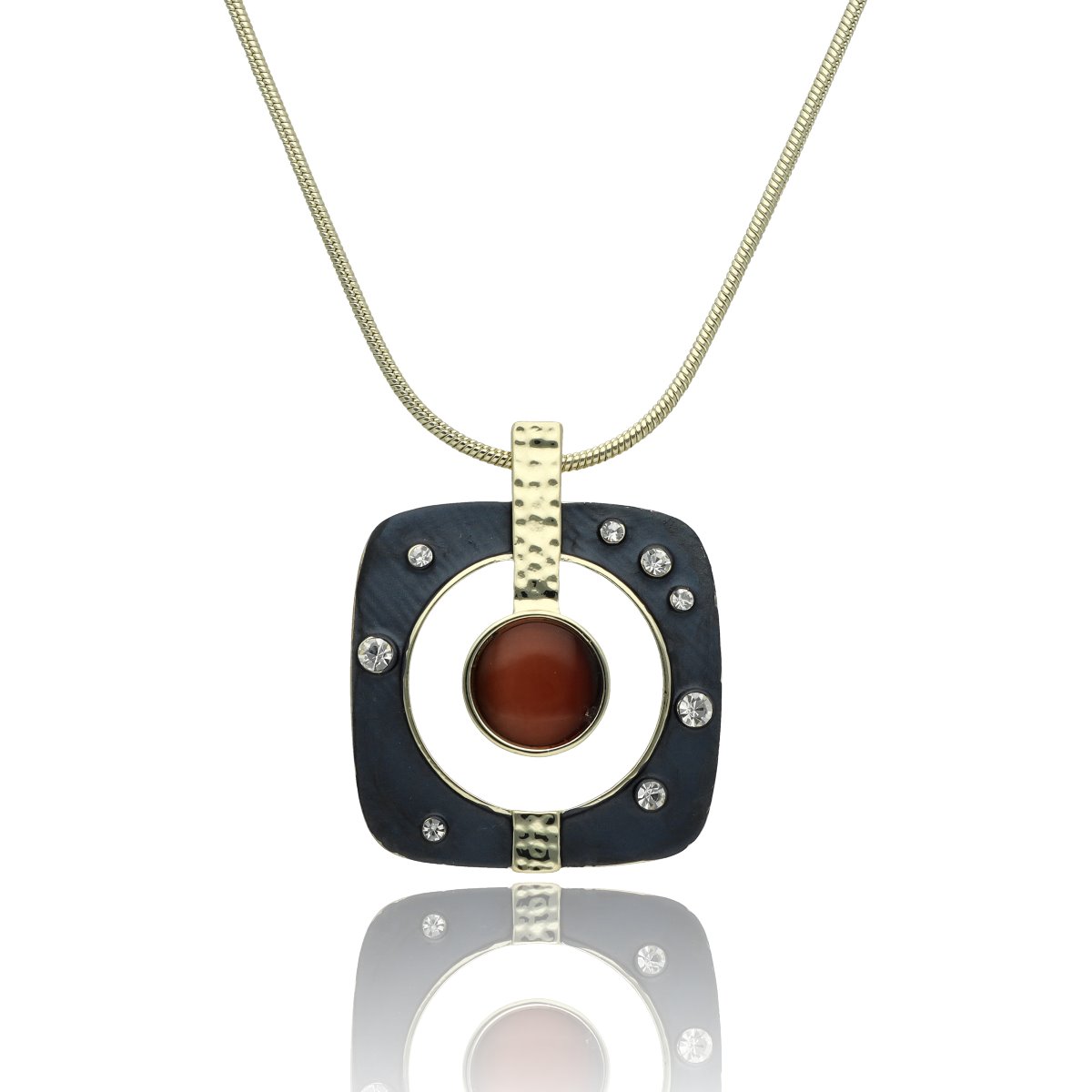 Uroczy, dekoltowy naszyjnik wykonany z antyalergicznego metalu, kwarcu i kolorowej emalii. Długość 45 cm + 8 cm regulacja. Szukaj do kompletu bransoletki i kolczyków o tym samym indeksie numerycznym.