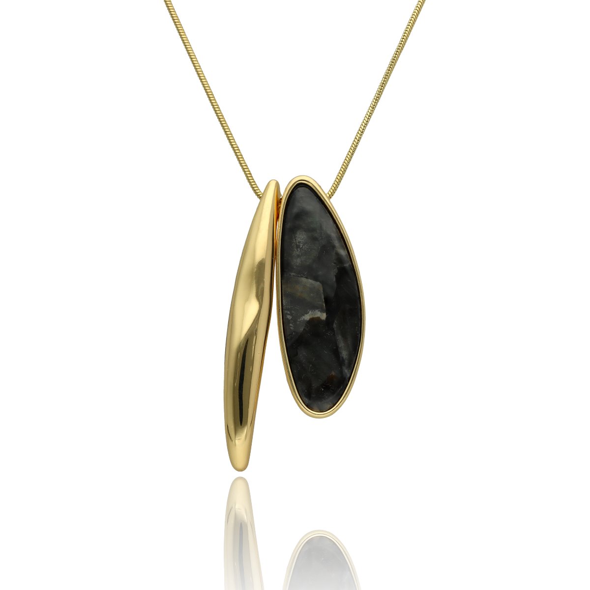 Elegancki, krótki naszyjnik wykonany z metalu antyalergicznego, ozdobiony efektowną zawieszką o długości ok. cm. Zawieszka została wykonana z naturalnej muszli szarej, tworząc harmonijne, przyciągające uwagę połączenie.