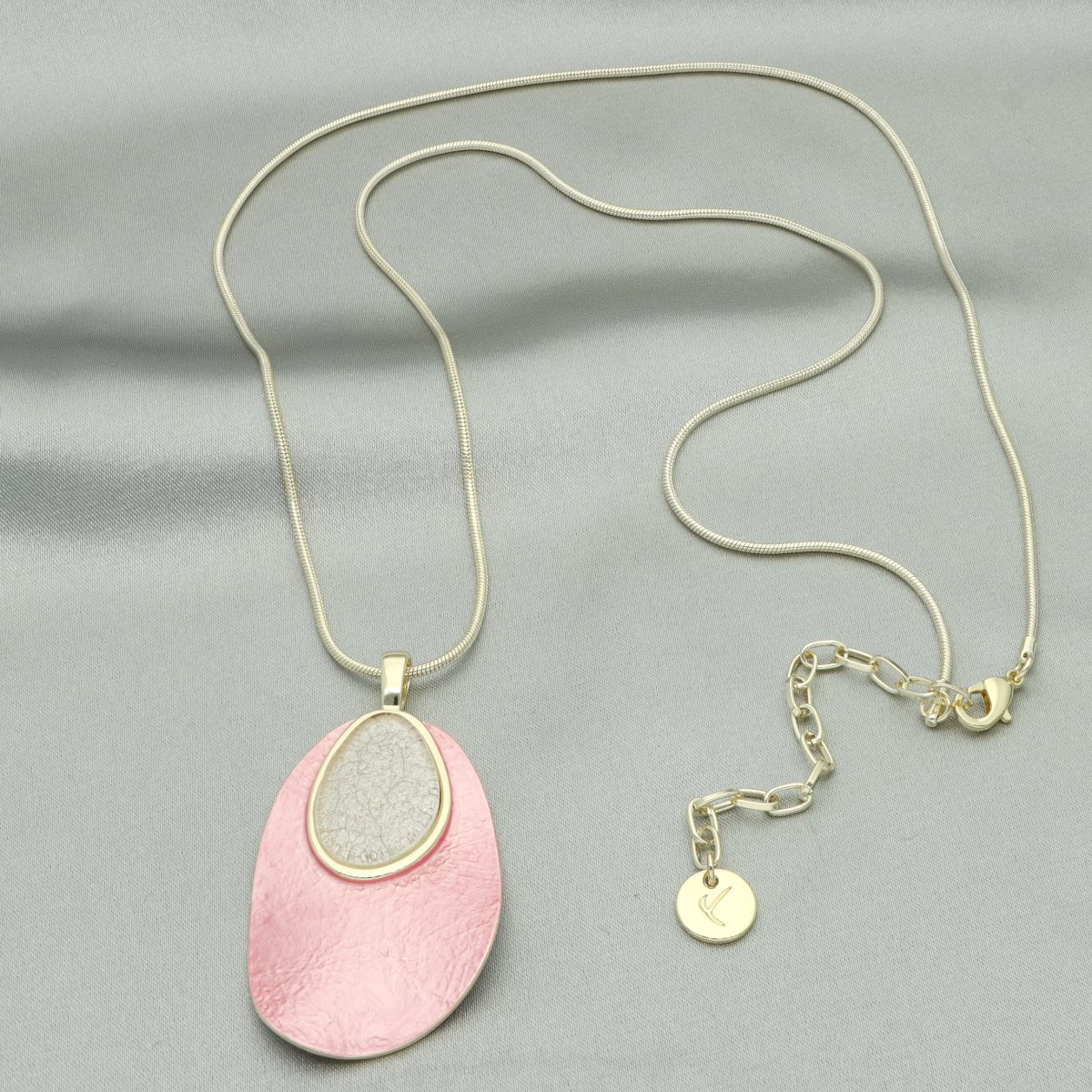 Elegancki, długi naszyjnik wykonany z antyalergicznego metalu i kolorowej żywicy. Długość 70 cm + regulacja. Szukaj do kompletu bransoletki i kolczyków o tym samym indeksie numerycznym.