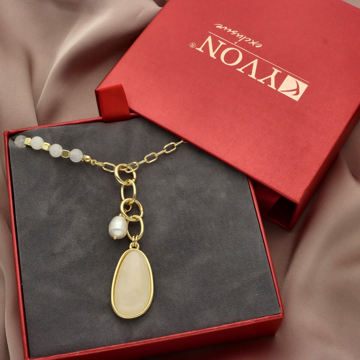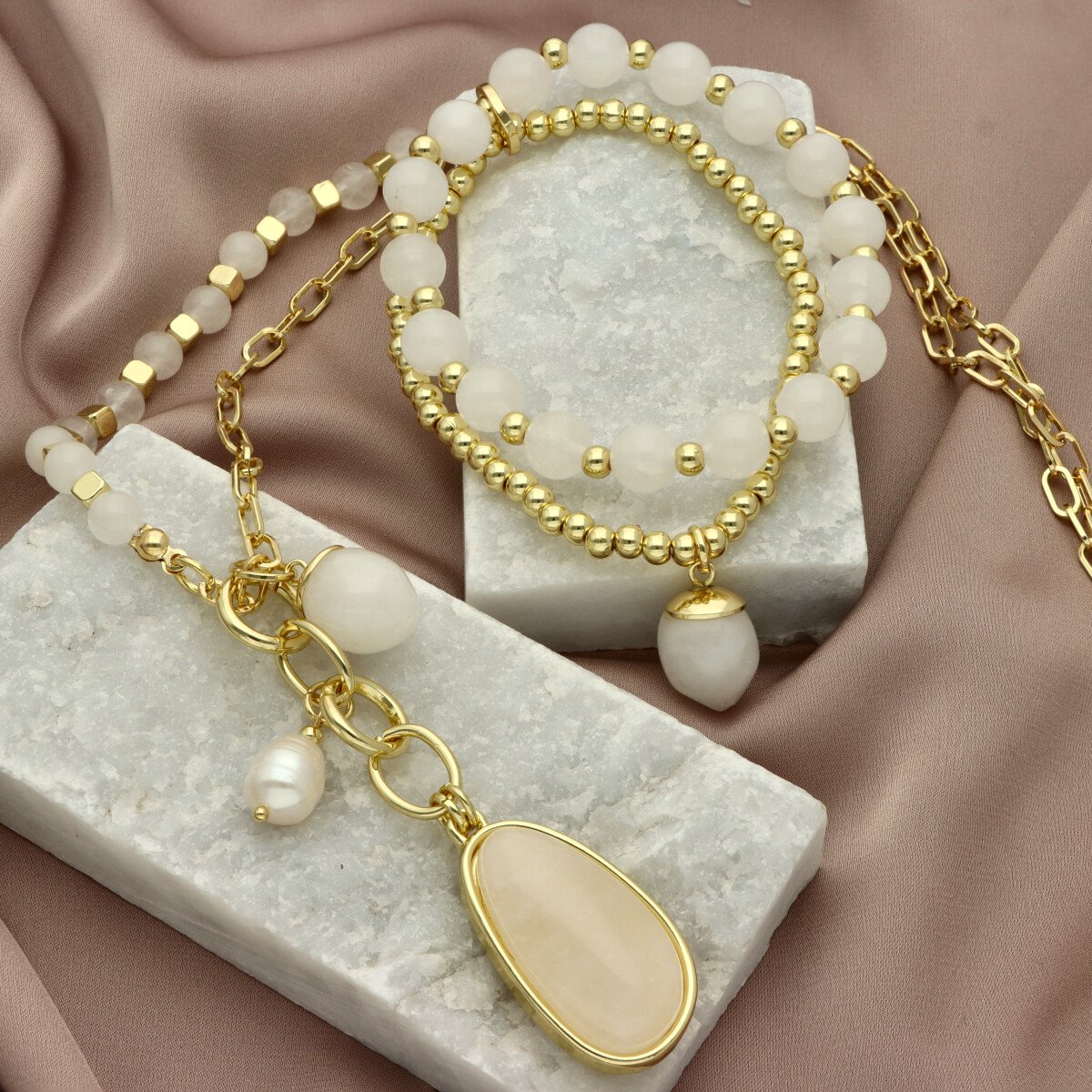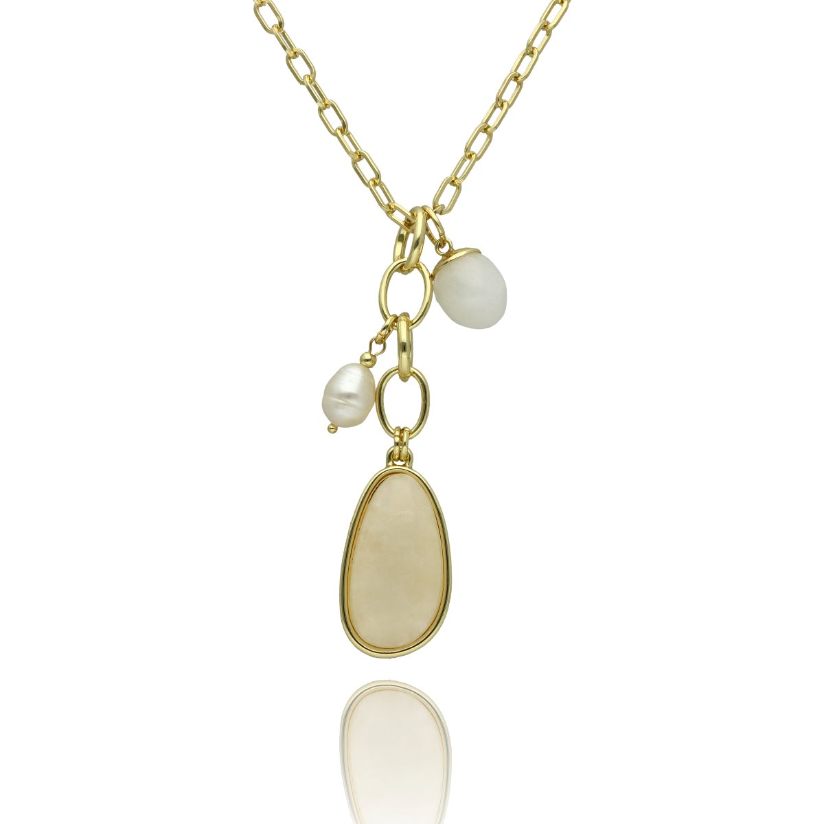 Długi, wysmuklający sylwetkę naszyjnik z okazałym jadeitem i drobną perłą naturalną. Wykonany z wysokiej jakości metalu - antyalergicznego (zamak). Długość: 70 cm + łańcuszek do regulacji. Szukaj do kompletu bransoletki o tym samym indeksie numerycznym. W eleganckim pudełku GRATIS.