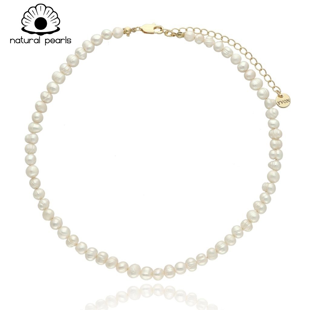 Naszyjnik wykonany z NATURALNYCH PEREŁ SŁODKOWODNYCH o subtelnym, naturalnym połysku. Każda perła różni się kształtem, co podkreśla autentyczny charakter biżuterii.