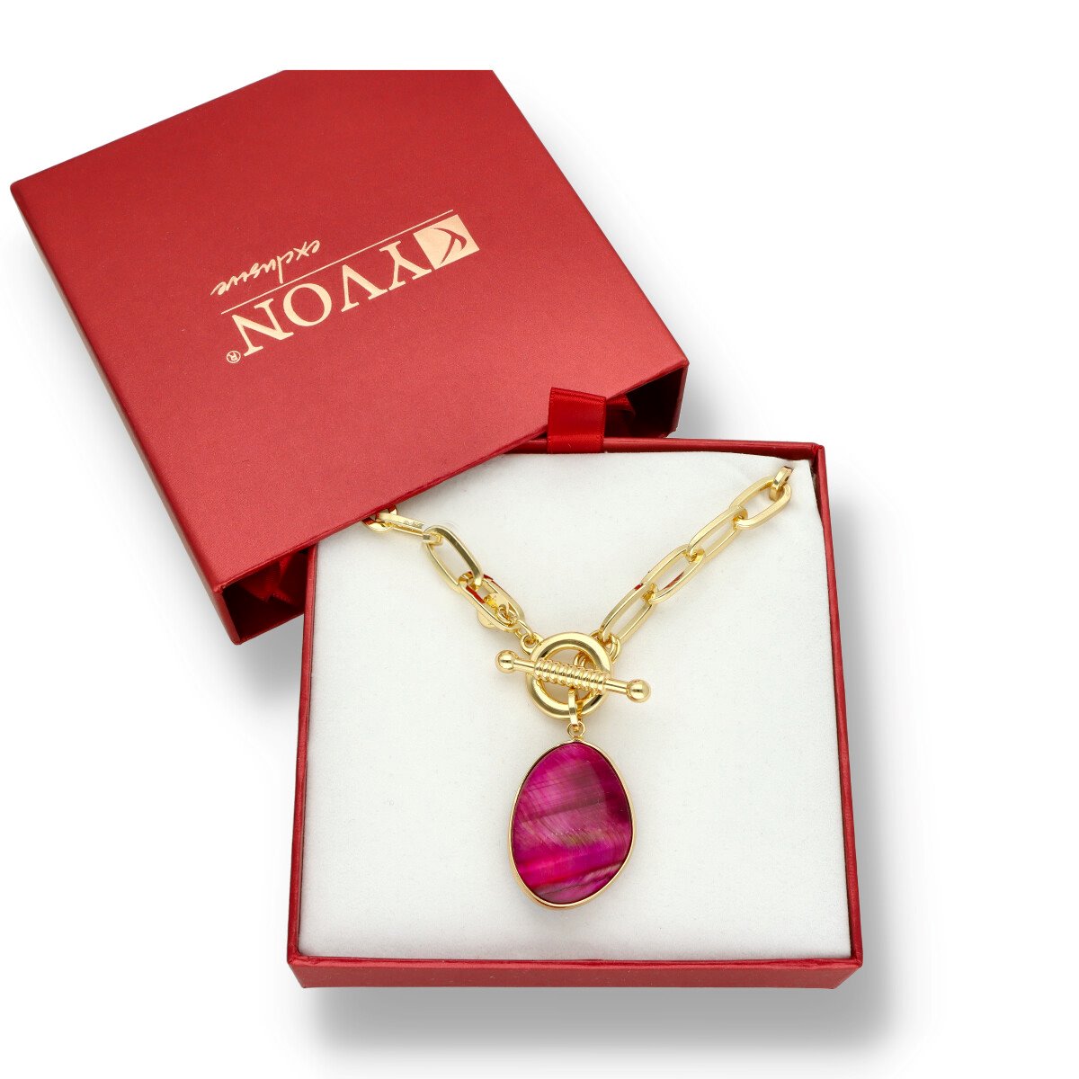 Elegancki, dekoltowy naszyjnik z okazałym kwarcem. Wykonany z wysokiej jakości metalu hypoalergicznego (zamak). Długość: ok 42 cm.