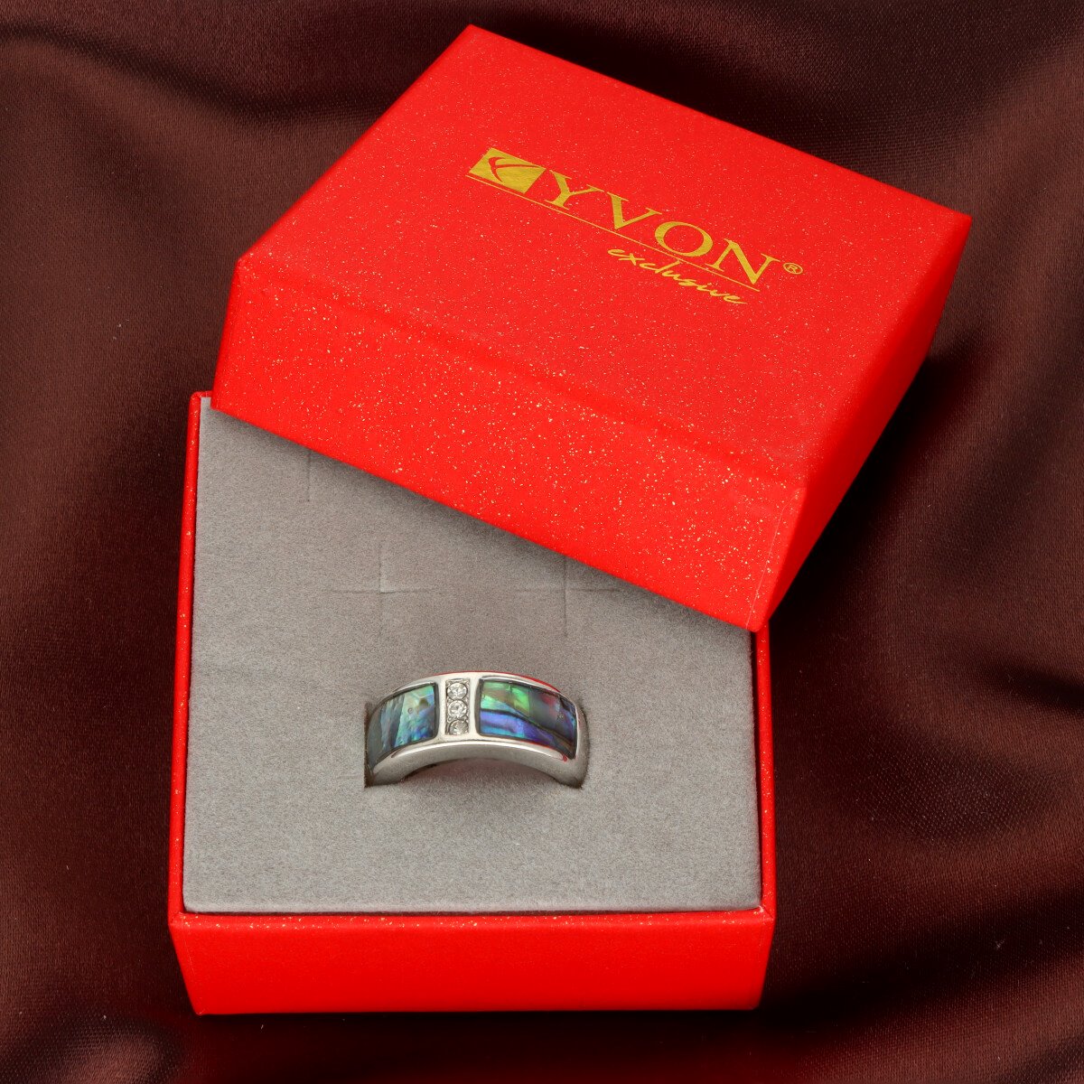 Elegancki pierścionek / damski sygnet wykonany z metalu antyalergicznego – bezpieczny nawet dla wrażliwej skóry, ozdobiony naturalną muszlą Abalone.