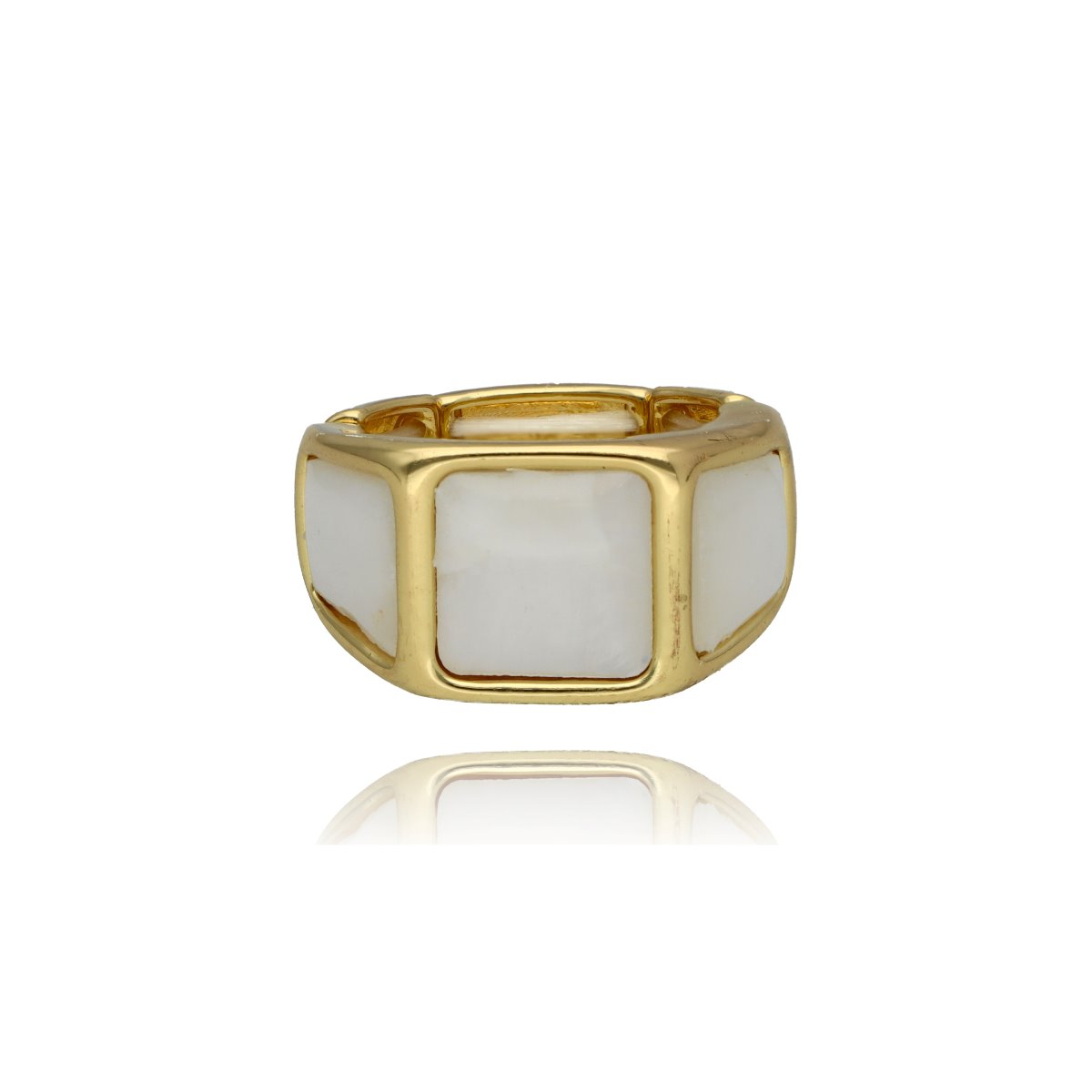 Pierścionek z muszli naturalnej mlecznej – rozciągliwy.