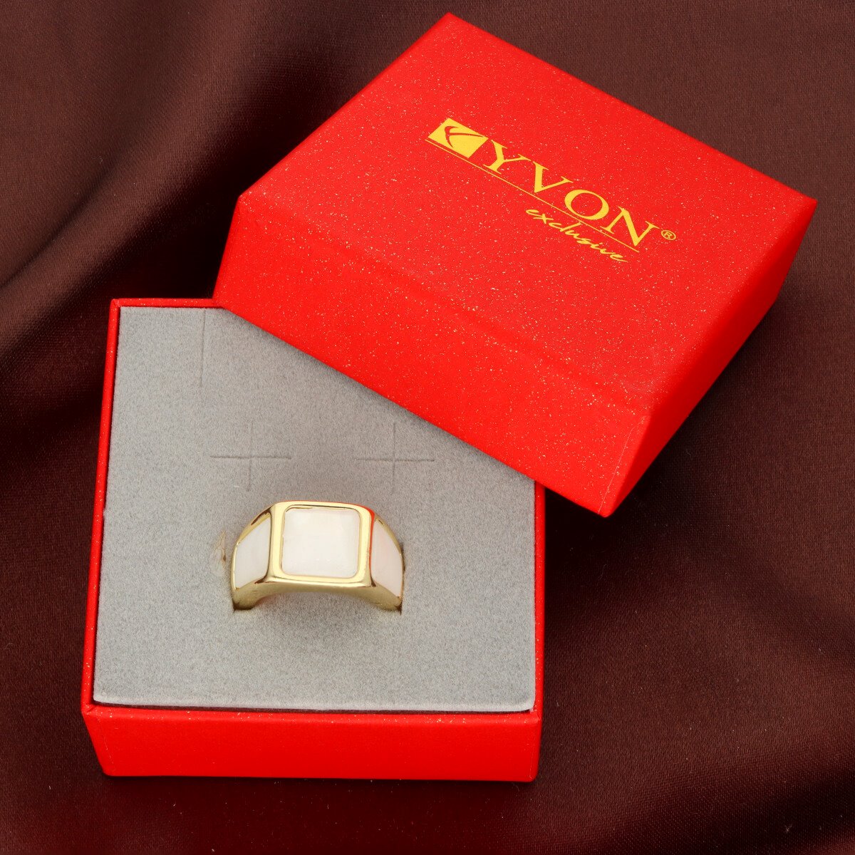 Elegancki pierścionek / damski sygnet wykonany z metalu antyalergicznego – bezpieczny nawet dla wrażliwej skóry, ozdobiony naturalną muszlą mleczną.
