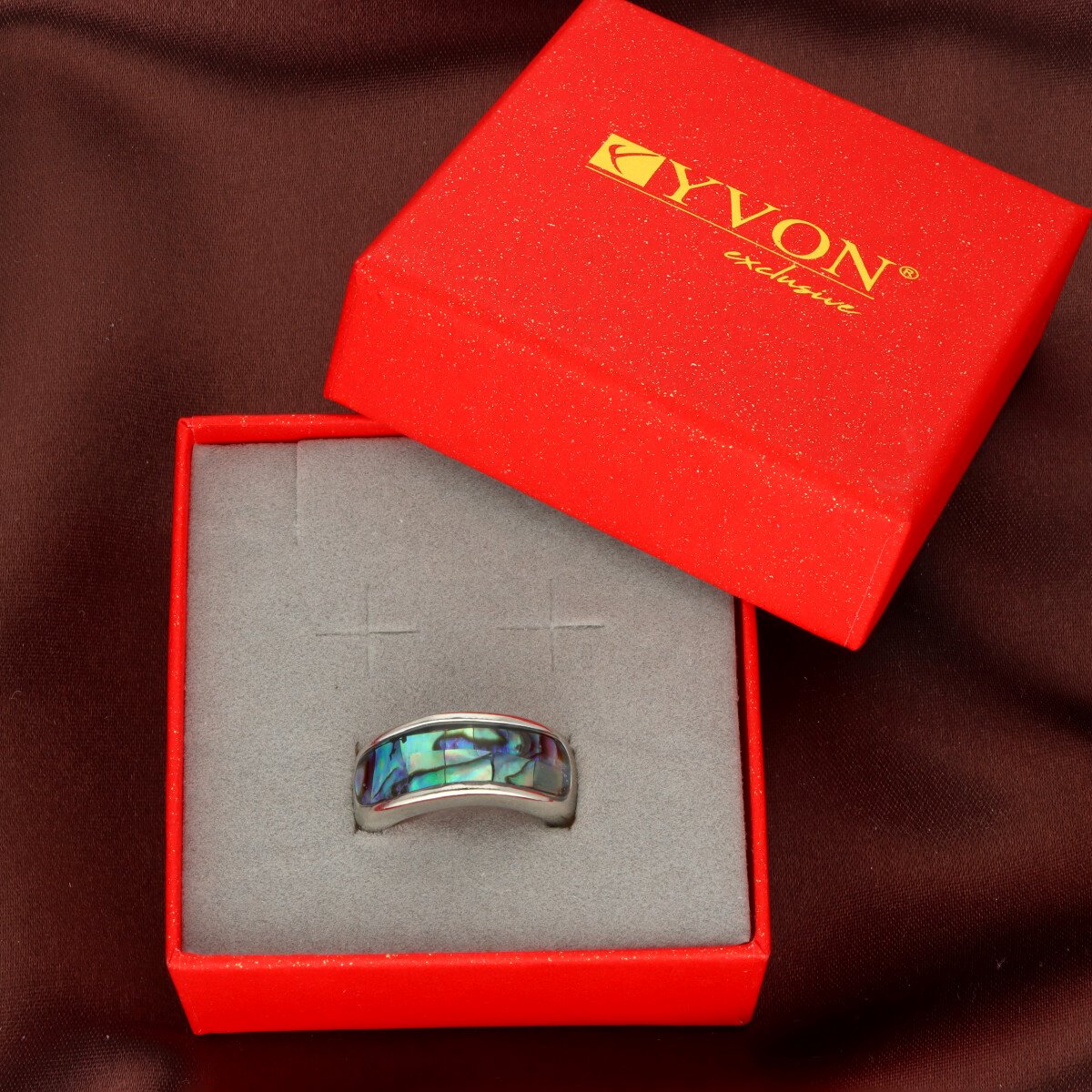 Elegancki pierścionek / damski sygnet wykonany z metalu antyalergicznego – bezpieczny nawet dla wrażliwej skóry, ozdobiony naturalną muszlą Abalone.