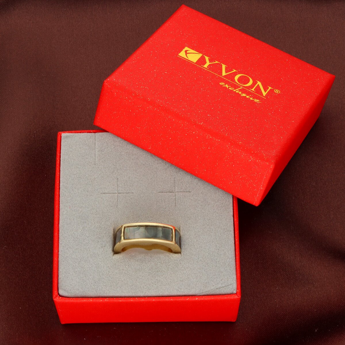 Elegancki pierścionek / damski sygnet wykonany z metalu antyalergicznego – bezpieczny nawet dla wrażliwej skóry, ozdobiony naturalną muszlą szarą.