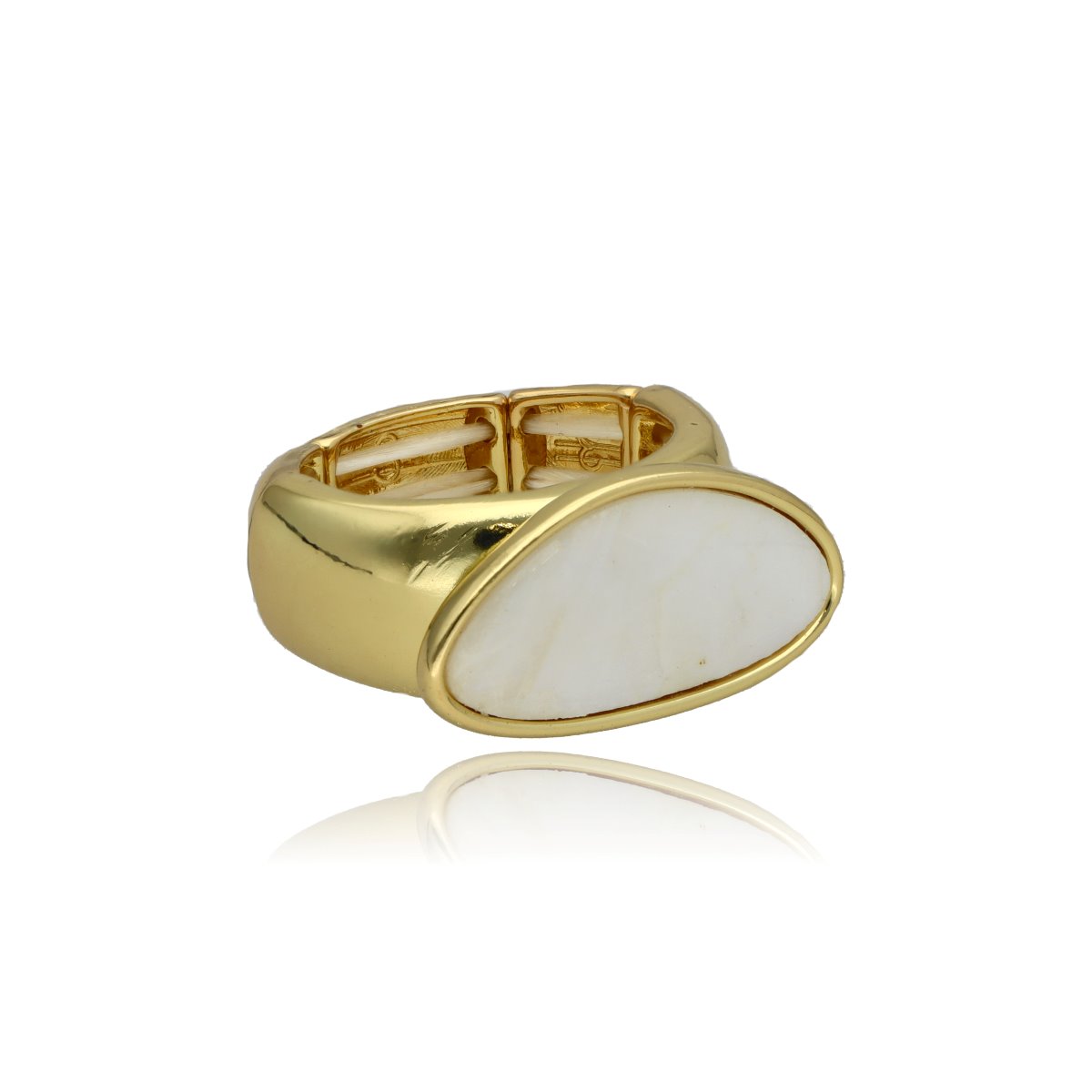 Pierścionek z muszli naturalnej mlecznej – rozciągliwy.