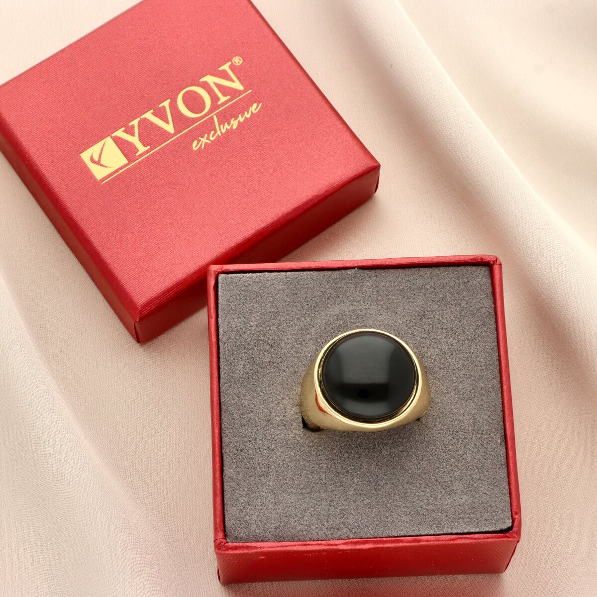 Wyrazisty pierścionek z naturalnym agatem czarnym to elegancki akcent całego zestawu. Gładko szlifowany kamień o głębokim, czarnym odcieniu i subtelnym połysku tworzy ponadczasową, wyrafinowaną formę.