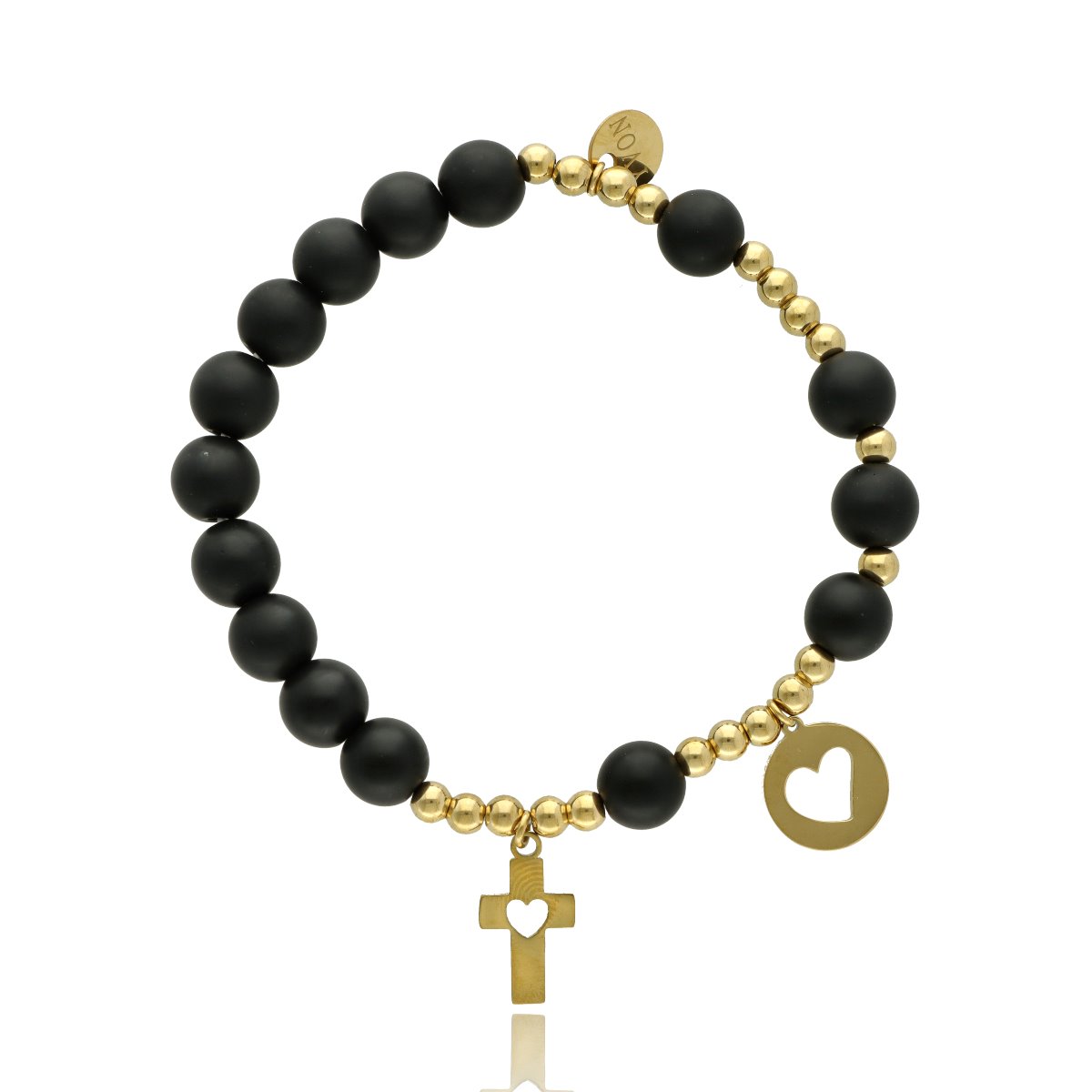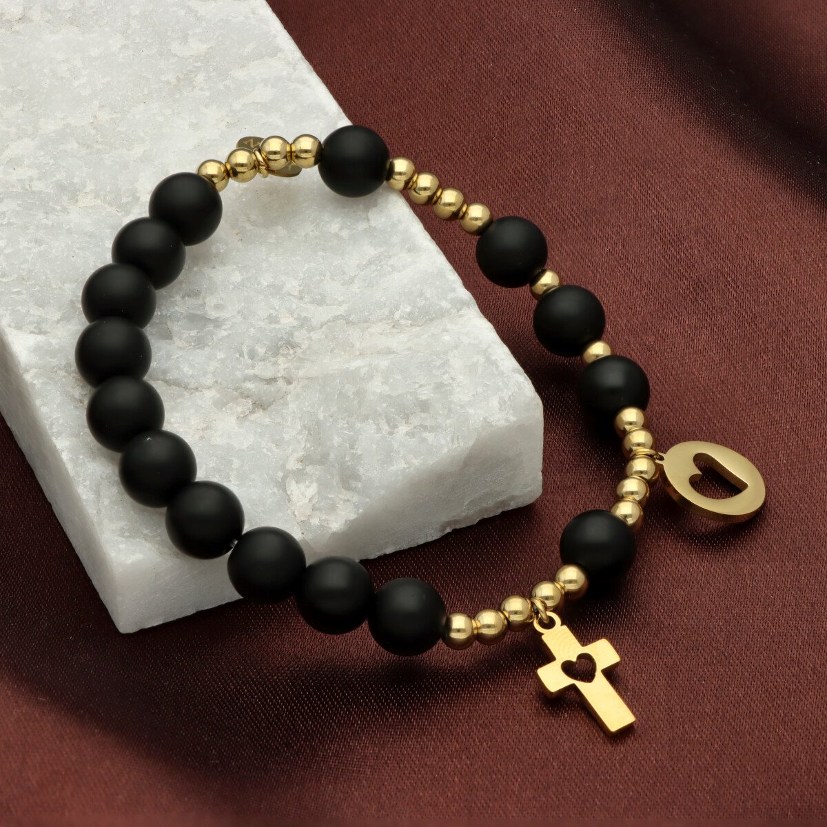 Różaniec wykonany z naturalnych kamieni (AGAT CZARNY) oraz ze stali szlachetnej 316L, złoconej trwałą metodą PVD. To elegancka, solidna biżuteria o ponadczasowym charakterze — idealna jako osobista ozdoba lub prezent.