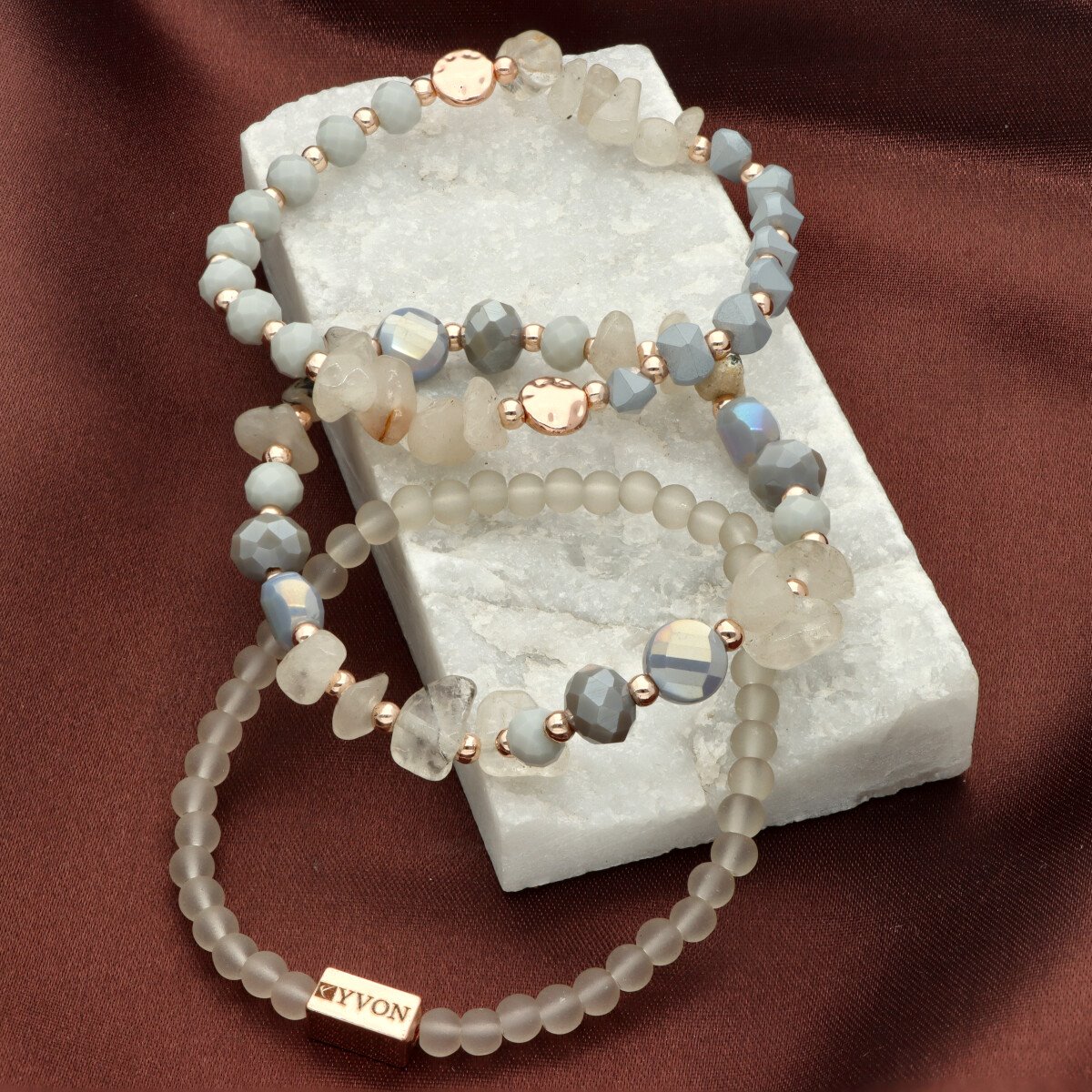 Zestaw trzech bransoletek z KAMIENIAMI NATURALNYMI (jaspis brązowy), który łączy w sobie klasyczną elegancję i najwyższą jakość wykonania. Każdy element został starannie dobrany – od antyalergicznego mosiądzu, przez elementy z kamieni, aż po misternie fasetowane koraliki z kryształu górskiego. Subtelne połączenie tych materiałów tworzy niepowtarzalny, ponadczasowy dodatek. Bransoletki zapakowane są w eleganckie pudełeczko z miękką poduszeczką, co sprawia, że zestaw doskonale nadaje się na prezent.