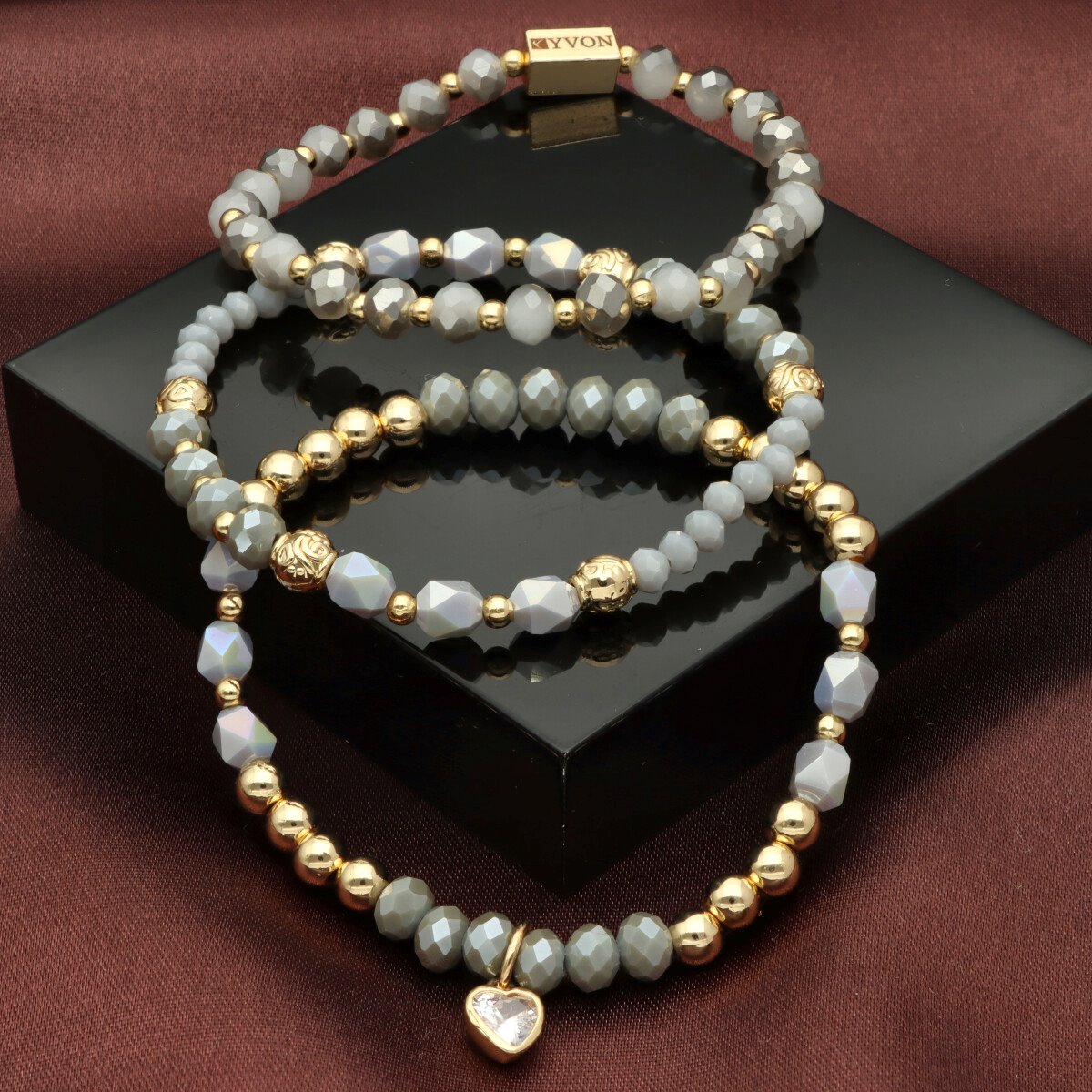 Zestaw trzech bransoletek z KAMIENIAMI NATURALNYMI (KWARC DYMNY), który łączy w sobie klasyczną elegancję i najwyższą jakość wykonania. Każdy element został starannie dobrany – od antyalergicznego mosiądzu, przez elementy z kamieni, aż po misternie fasetowane koraliki z kryształu górskiego. Subtelne połączenie tych materiałów tworzy niepowtarzalny, ponadczasowy dodatek.