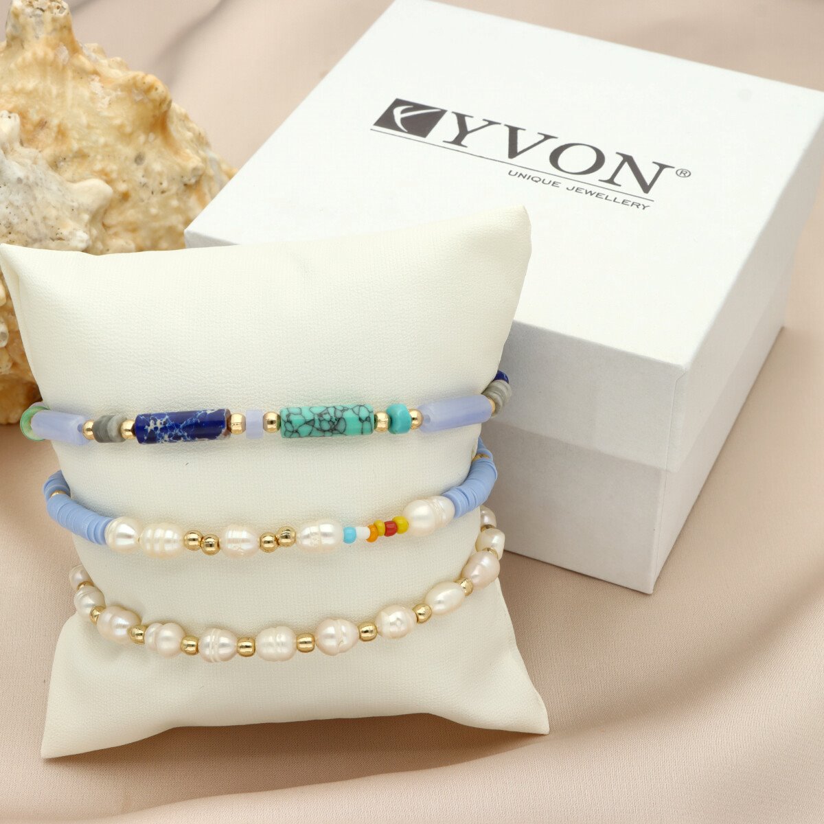 Bransoletki zapakowane są w eleganckie pudełeczko z poduszeczką, co sprawia, że zestaw doskonale nadaje się na prezent.