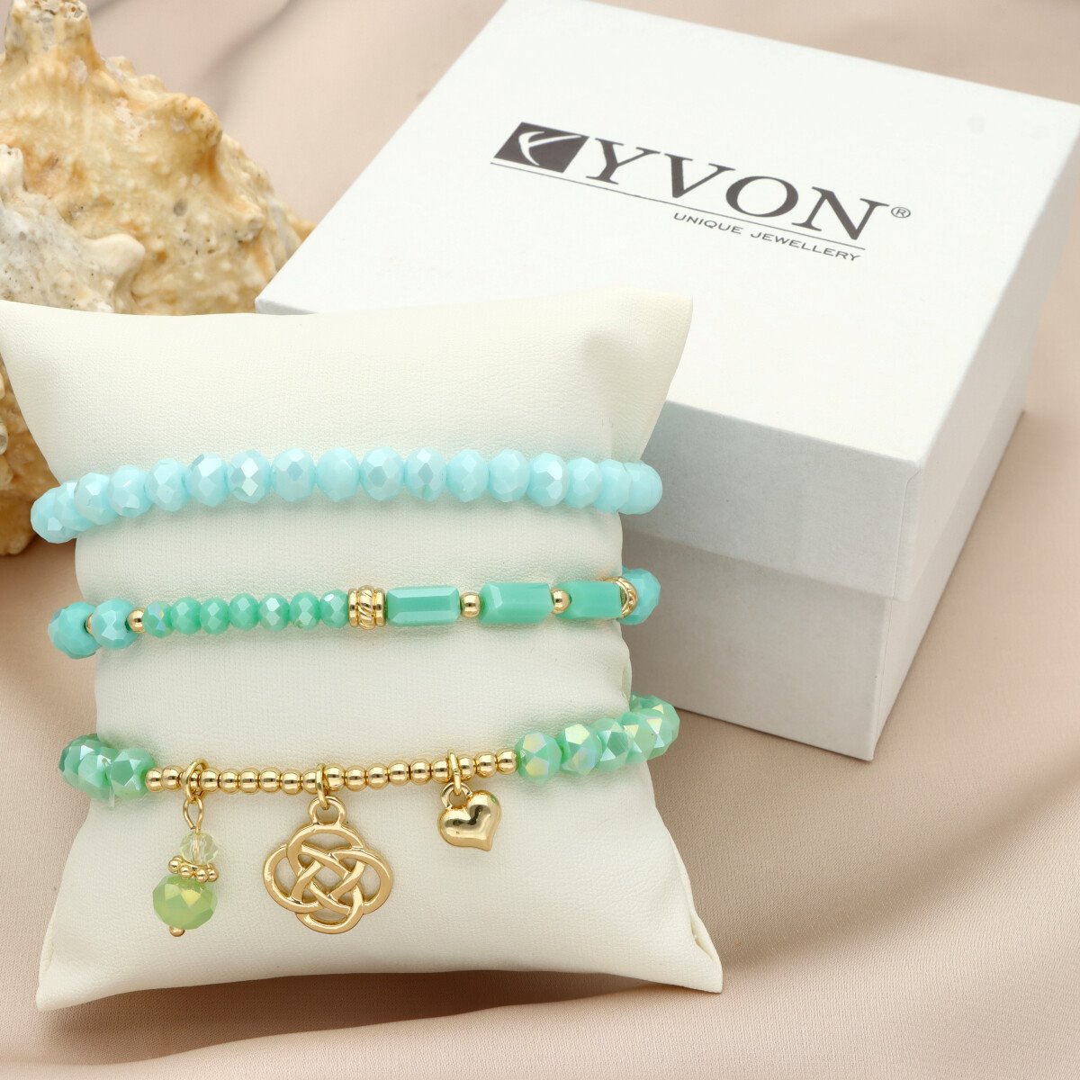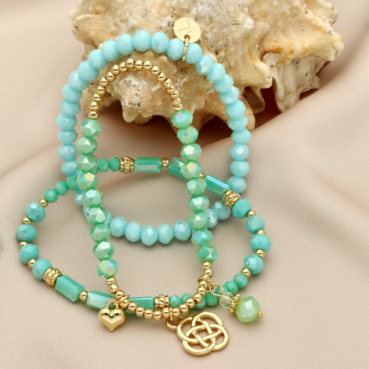 Zestaw trzech bransoletek z hipoalergicznego mosiadzu i szkła kryształowego.