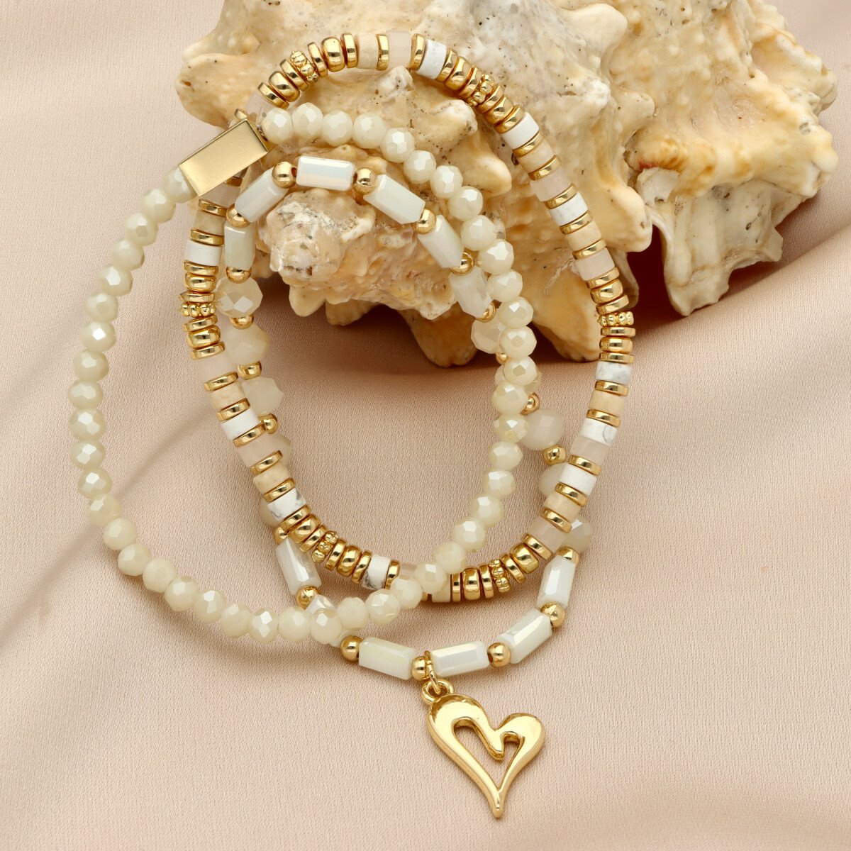 Zestaw trzech bransoletek z hipoalergicznego mosiadzu, szkła kryształowego i KAMIENI NATURALNYCH: marmur, howlit.
