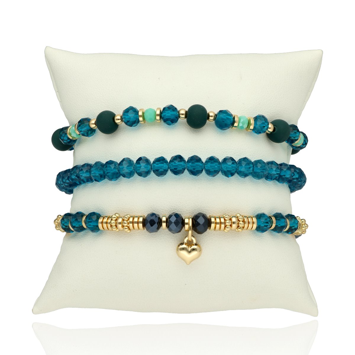 Zestaw trzech bransoletek z hipoalergicznego mosiadzu i szkła kryształowego.