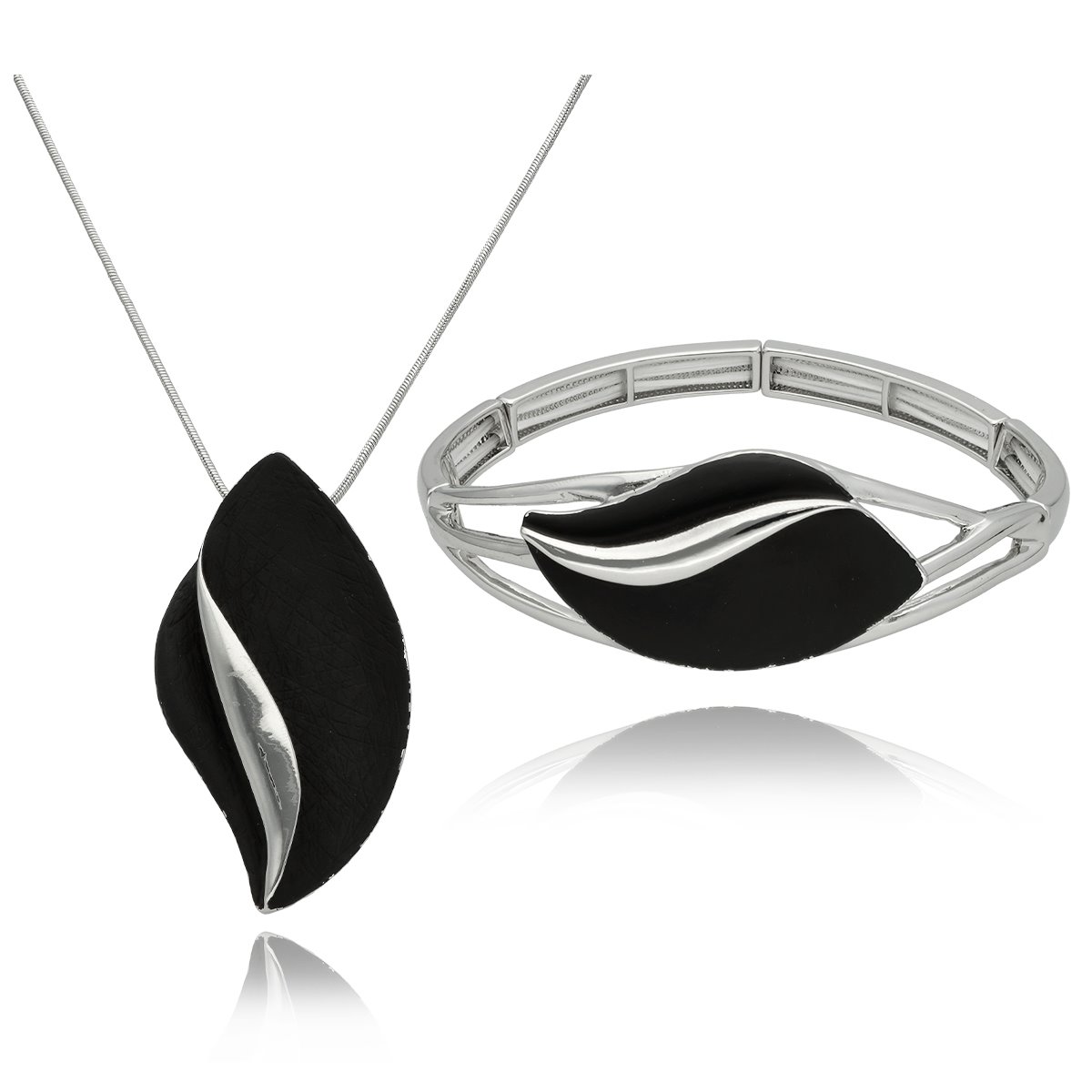 Ekskluzywny komplet biżuterii z linii YVON Exclusive, składający się z eleganckiego naszyjnika oraz dopasowanej bransolety. Zestaw wykonany jest z hipoalergicznego stopu cynku (zamak) oraz ręcznie nanoszonej emalii. Starannie polerowane elementy nadają biżuterii nowoczesny, luksusowy charakter, jednocześnie zachowując lekkość i komfort noszenia.