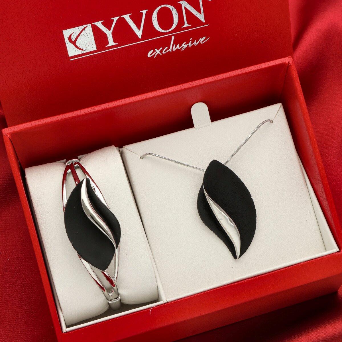Naszyjnik i bransoleta tworzą spójny, harmonijny komplet, idealny do eleganckich stylizacji i wieczorowych zestawów. Każdy zestaw pakowany jest w duże, ekskluzywne pudełko prezentowe YVON, zaprojektowane tak, aby pomieścić cały komplet i podkreślić jego luksusowy charakter.