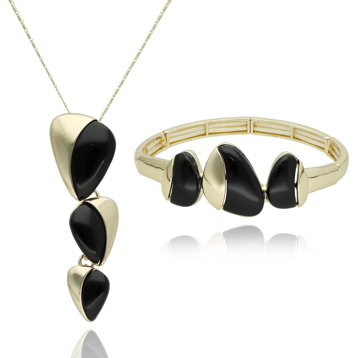 Ekskluzywny komplet biżuterii z linii YVON Exclusive, składający się z eleganckiego naszyjnika oraz dopasowanej bransolety. Zestaw wykonany jest z hipoalergicznego stopu cynku (zamak) oraz wysokiej jakości żywicy z efektem głębi. Starannie polerowane elementy nadają biżuterii nowoczesny, luksusowy charakter, jednocześnie zachowując lekkość i komfort noszenia.