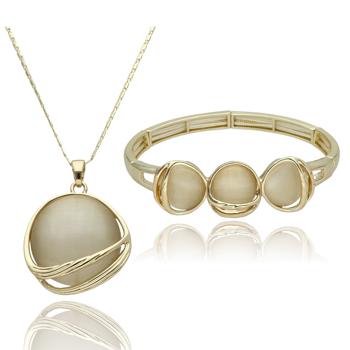 Ekskluzywny komplet biżuterii z linii YVON Exclusive, składający się z eleganckiego naszyjnika oraz dopasowanej bransolety. Zestaw wykonany jest z hipoalergicznego stopu cynku (zamak) oraz wysokiej jakości żywicy z efektem głębi. Starannie polerowane elementy nadają biżuterii nowoczesny, luksusowy charakter, jednocześnie zachowując lekkość i komfort noszenia.