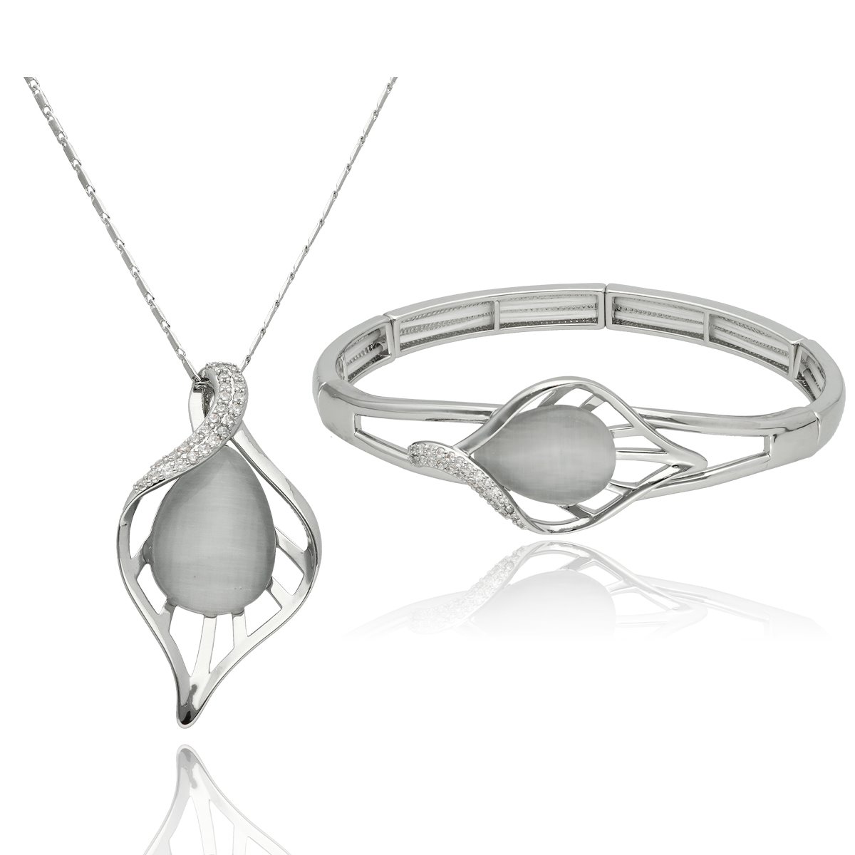 Ekskluzywny komplet biżuterii z linii YVON Exclusive, składający się z eleganckiego naszyjnika oraz dopasowanej bransolety. Zestaw wykonany jest z hipoalergicznego stopu cynku (zamak) oraz KWARCU. Starannie polerowane elementy nadają biżuterii nowoczesny, luksusowy charakter, jednocześnie zachowując lekkość i komfort noszenia.