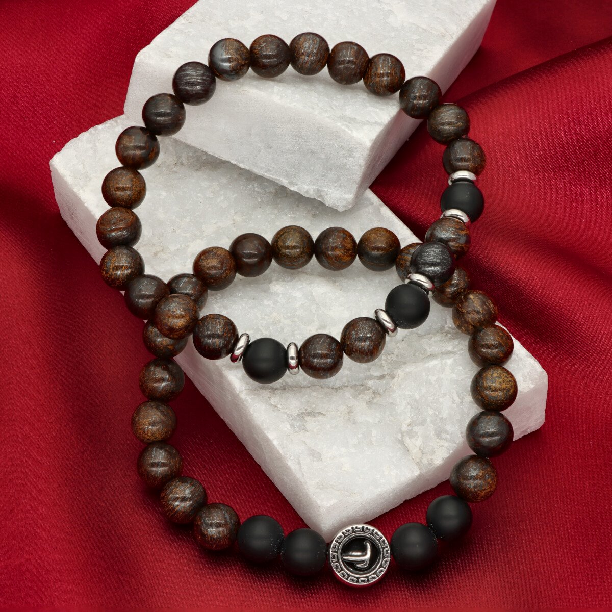 Zestaw męskich bransoletek wykonanych z naturalnych kamieni (pietersyt, agat), z dodatkiem stali szlachetnej i hematytu – materiałów cenionych za trwałość, odporność i elegancki wygląd. Każdy zestaw zawiera dwie bransoletki, które doskonale komponują się ze sobą kolorystycznie i stylistycznie – możesz je nosić razem lub osobno.