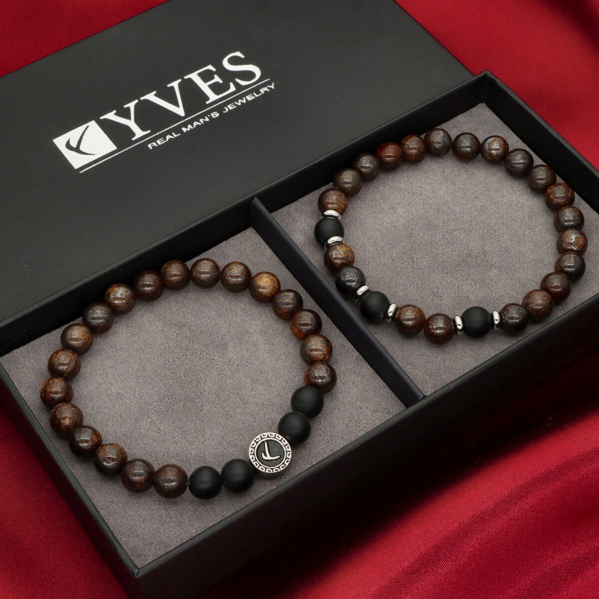 Bransoletki osadzone są na elastycznej, mocnej lince, dzięki czemu dopasowują się do nadgarstka. Całość zapakowana w stylowe, czarne pudełko sygnowane logo YVES – Real Man's Jewelry.